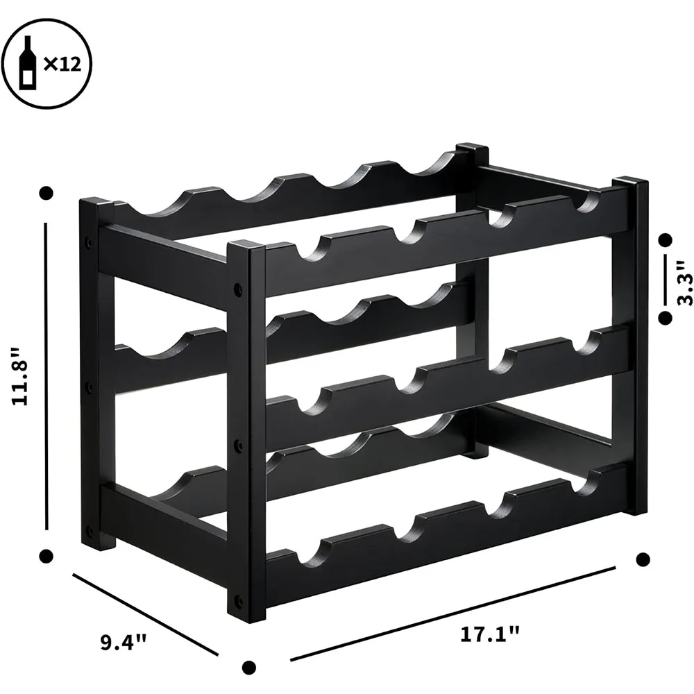 Estante moderno de bambú de 3 niveles para 12 botellas, estante giratorio de 3 grados, robusto y duradero, armario negro para despensa o encimera