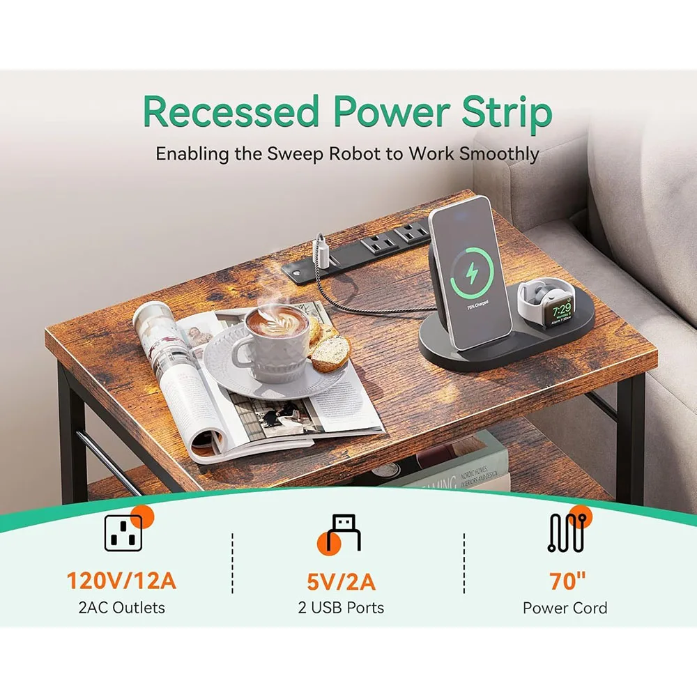 モダンな4段収納ベッドサイドナイトスタンド 高さのあるナイトスタンド 充電ステーションと引き出し付き ホームベッドルーム用エンドテーブル
