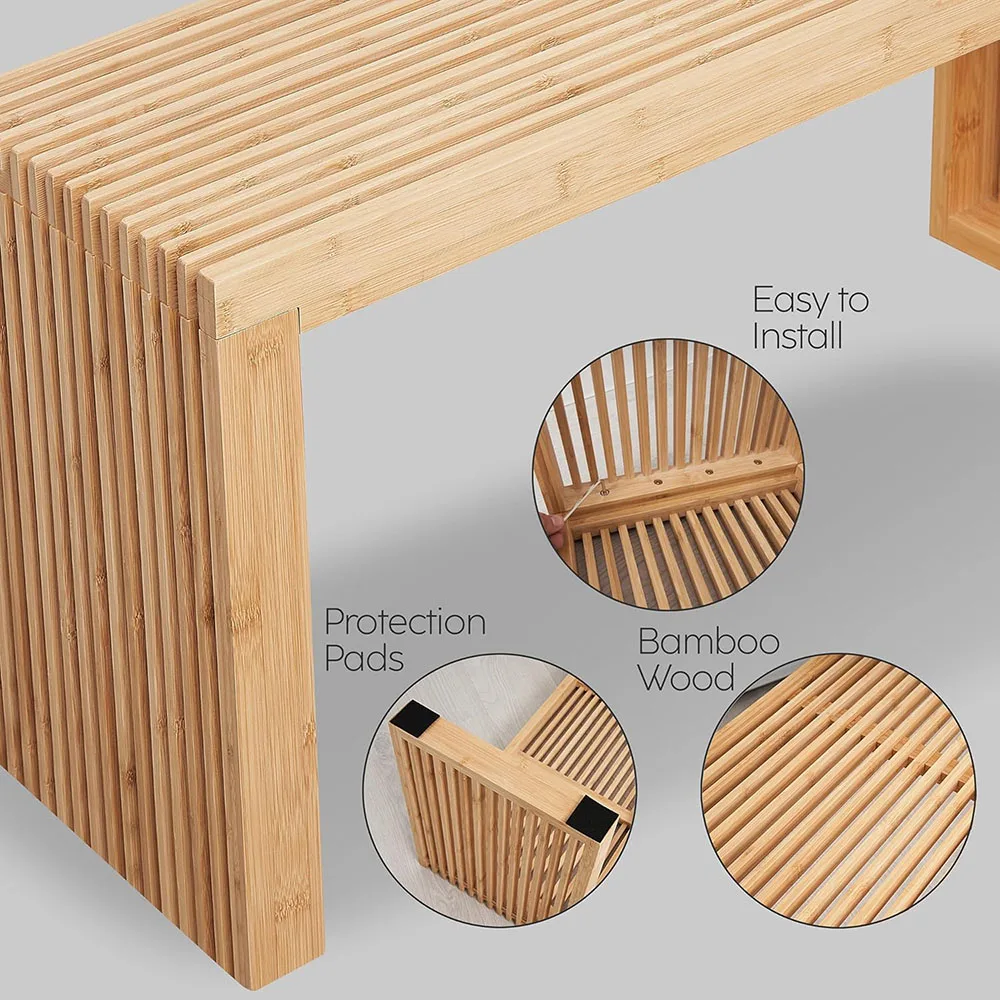 Bangku Kayu Bambu Semula Jadi 36-Inci Bangku Kecil untuk Pintu Masuk, Bilik Tidur, Ruang Tamu & Ruang Makan