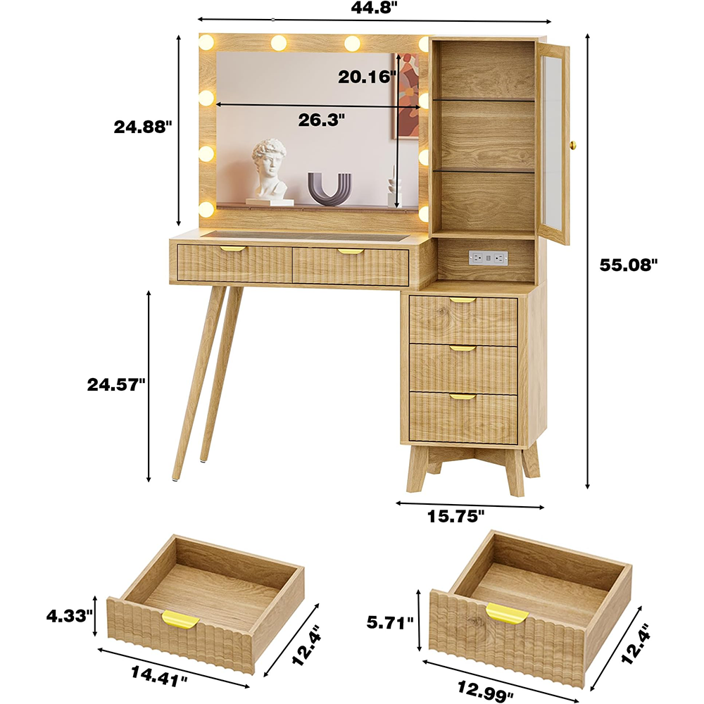 သင် ထားရှိမည့်နေရာ၏ တိကျသော အတိုင်းအတာများကို မသိမချင်း သင့်အသစ်ဝယ်မည့် မိတ်ကပ်စားပွဲနှင့် အလွန်နှစ်သက်မသွားပါနှင့်။ အလွန်ကြီးမားသော စားပွဲသည် သင့်နေရာကို ကျဉ်းကျပ်စေပါလိမ့်မည် ,နှင့် အလွန်သေးငယ်သော အလွန်သေးငယ်ပါက စိတ်ဆိုးရန်ဖြစ်စေမည်။ အိပ်ခန်းအများစုသည် လက္ခဏာပြင်ဆင်ရန် 30 မှ 48 လက်မအထိ ကျယ်ဝန်းသော စင်များနှင့် ကိုက်ညီပါသည်။ -အခန်းသေးသေးတွင် ကုလားကာ သို့မဟုတ် ပေါ်လာဒီဇိုင်းကို စဉ်းစားသင့်ပါသည်။ ဤနည်းလမ်းများသည် ကုလားကာအောက်ရှိ နေရာအချို့ကို ရှင်းလင်းရာတွင် ကူညီပေးမည်ဖြစ်သည်။ အနက်အစိတ်အပိုင်းကိုလည်း ထည့်သွင်းစဉ်းစားပါ။ ,ဆွဲခြင်းများကို နံရံ သို့မဟုတ် အခြားပရိဘောဂများနှင့် မတိုက်မိစေဘဲ အပြည့်ဖွင့်နိုင်ရန် နေရာလိုအပ်ပါသည်။ သင့်ကုလားကာရှေ့တွင် သင့်လျော်သော နေရာကို ထားရှိပါ။ သင့်ခြေထောက်များကို စားပွဲအောက်တွင် သက်တောင့်သက်သာနှင့် ထိုင်နိုင်ပြီး ကျဉ်းမြောင်းမှုမရှိစေရန် ဖြစ်ပါသည်။