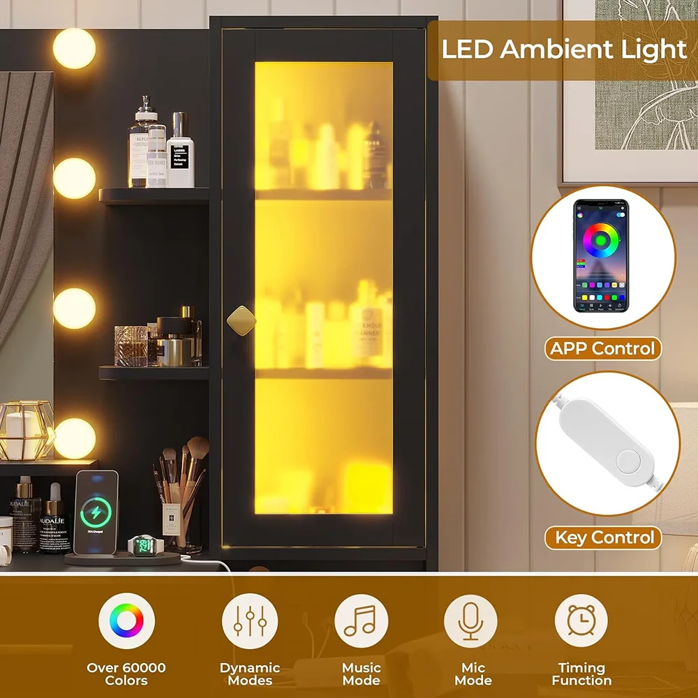 Soveromsmessig Moderne Tre MDF-sminkbord Med Lys, Stående Speil, Fjernbare Funksjoner, Vansbord Med Lagring For Smink