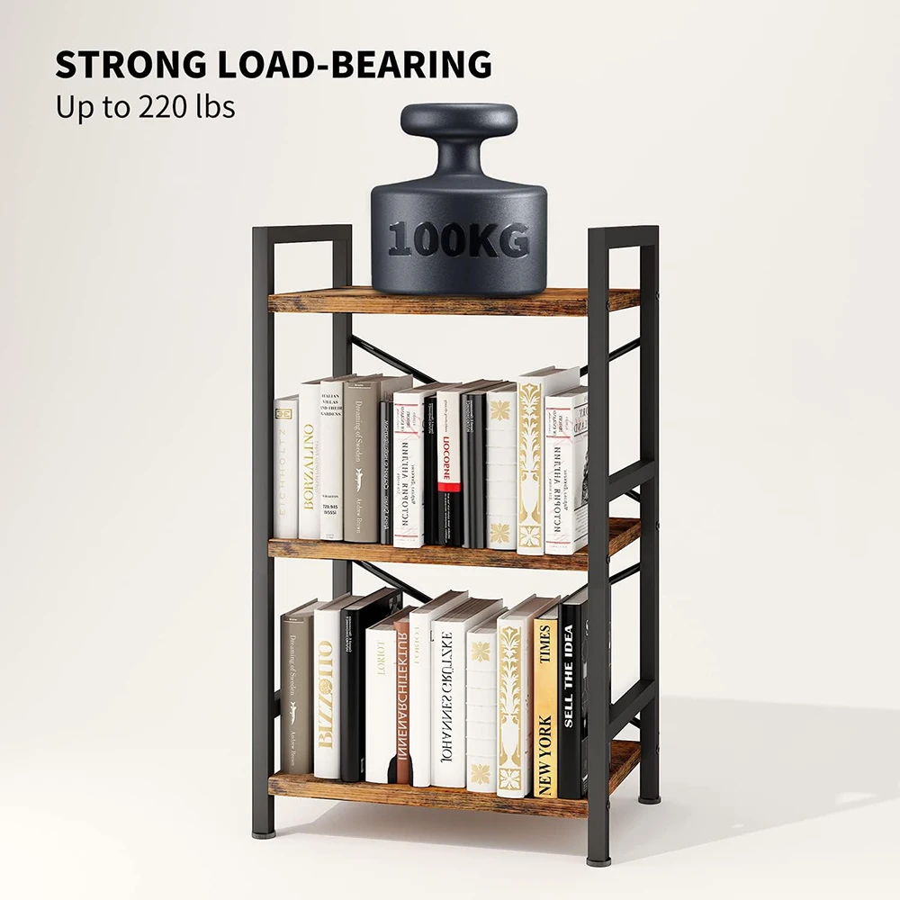 3 Tier Wooden Industrial Bookcase Rustic Etagere Book Shelf Storage Organizer Living Room Bedroom Home Office Hotel (Rustic