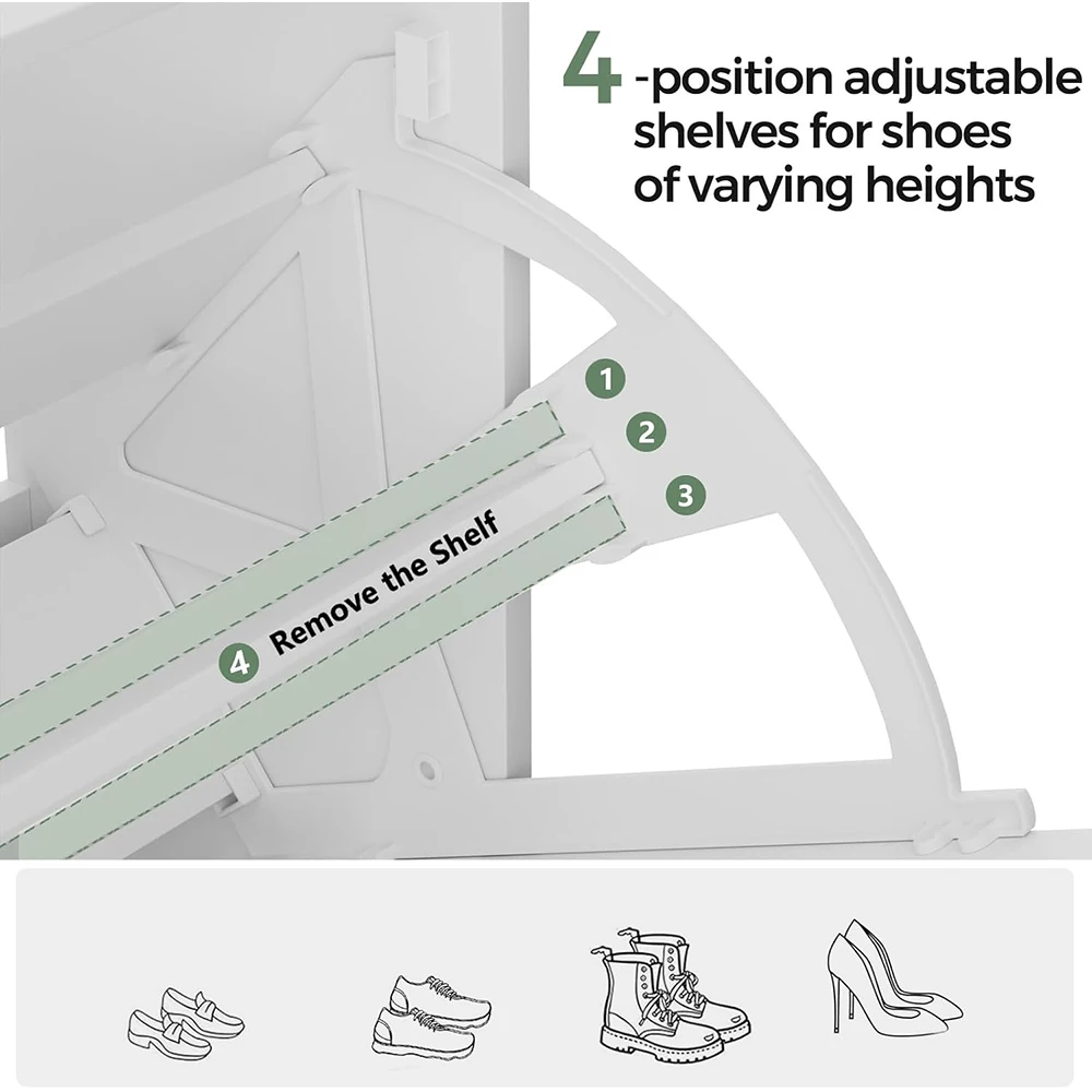 32\" Modern Farmhouse White Shoe Storage Cabinet 2 Flip Drawers Barn Door Design Adjustable Shelves Slim Narrow Shoe Rack
