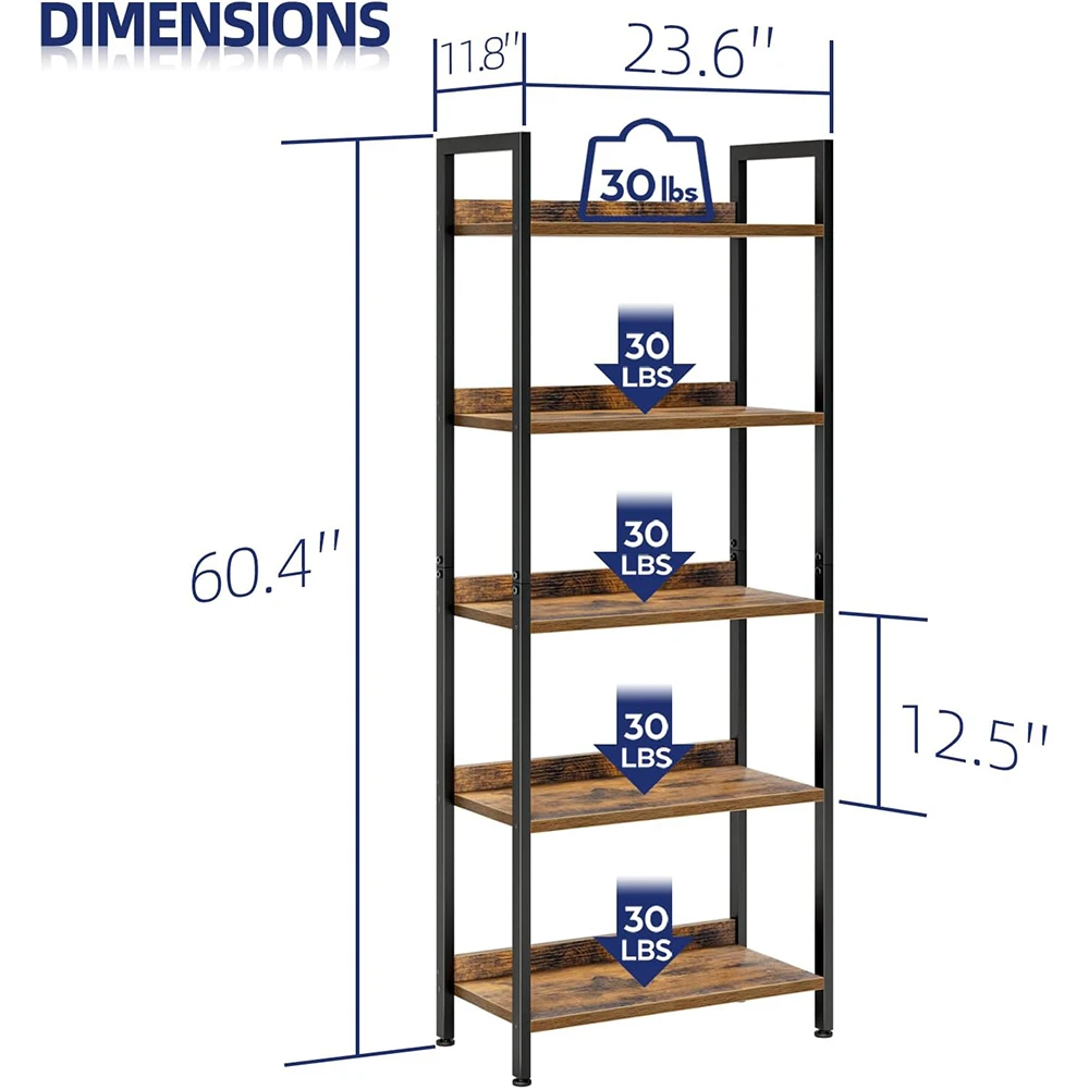 5 Tier Wooden Modern Bookshelves Home Office Bookcase Storage Organizer Free Standing Shelving Unit Bedroom Living Room