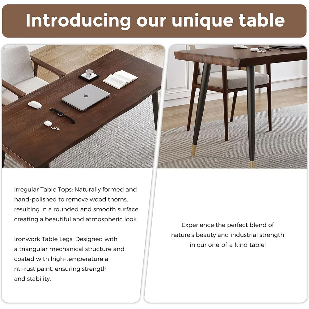 55\" Modern Simple Style Standing Desk for Home Office Bedroom Solid Wood Planks with Black Metal Legs Study Computer Desk