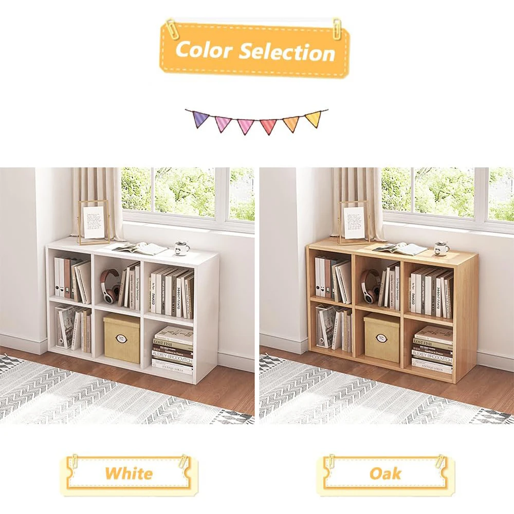 6 Cube Organizer Modern Wooden Bookcase-Fabric Storage Bins Container Open Shelf Simple Compartments for Home Office Living Room