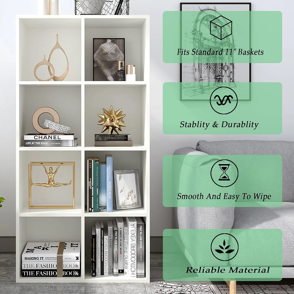 8-Cube Structure: Versatile storage solution with ample space for books, decor, and more.