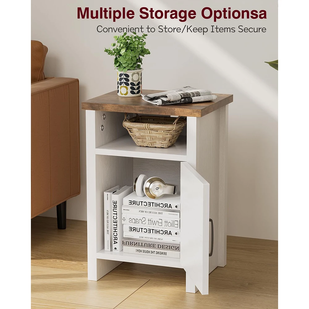 Farmhouse Modern Wooden Nightstand with Shelf and Barn Door Side Table Set of 1 for Bedroom White