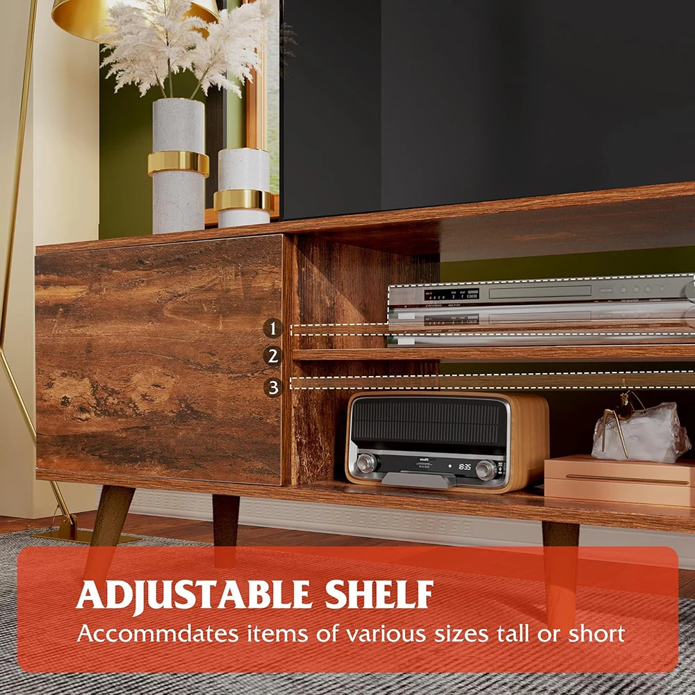 Mid Century Modern TV Stand for 55-60 Inch TVs Entertainment Center with Storage Wooden Living Room Furniture for Hotels