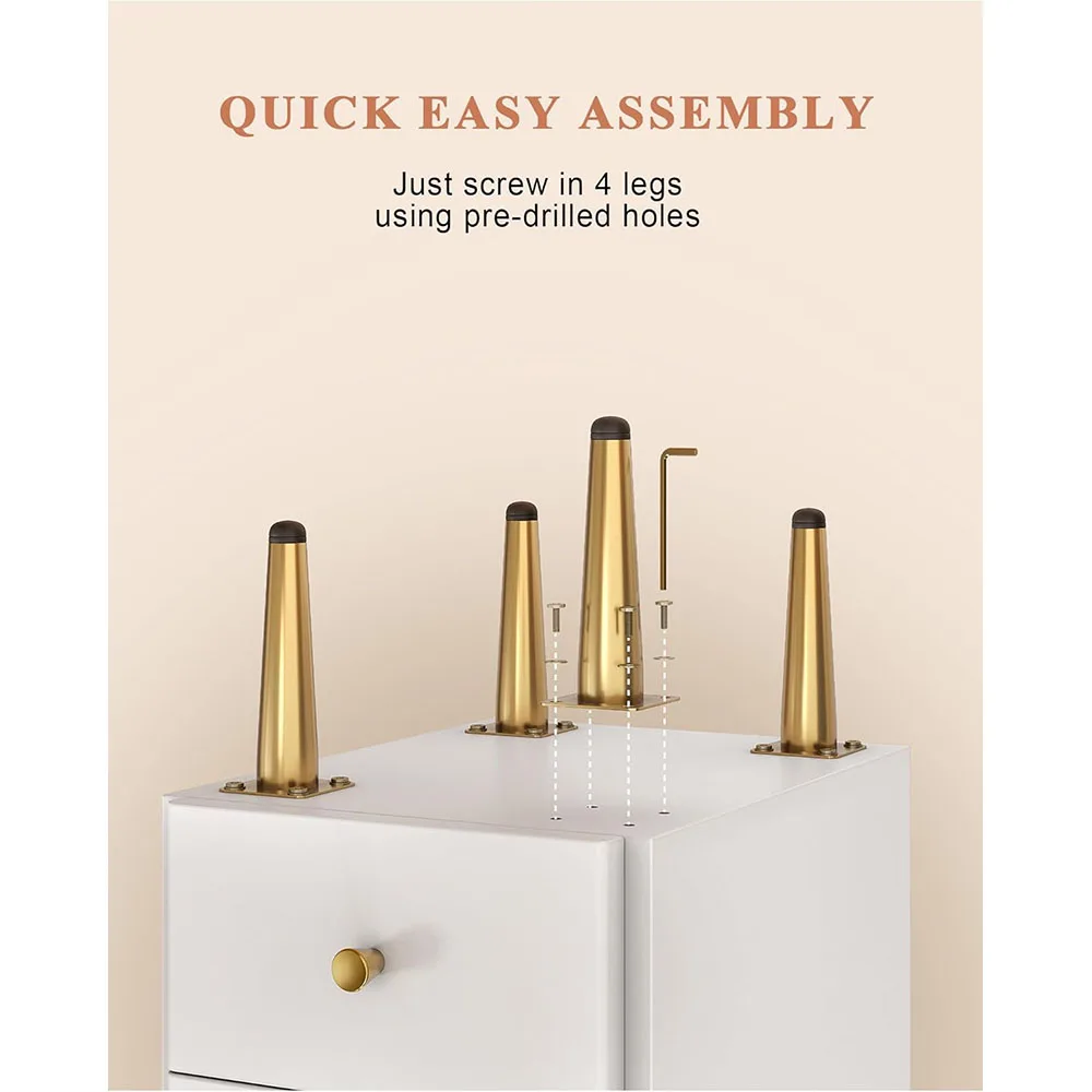 Modern Minimalist 3-Drawer Narrow Nightstand Small White Gold Bedside Table for Small Spaces for Bedroom Furniture