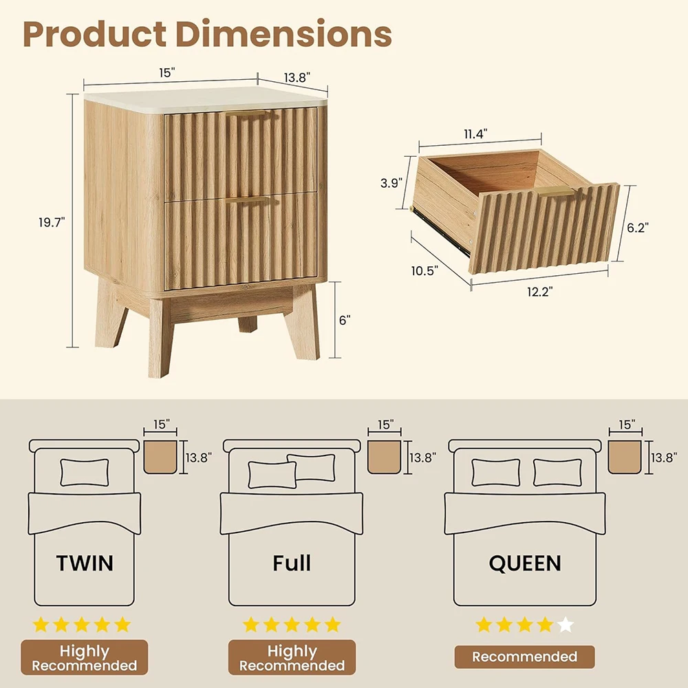 Modern Nu-Deco End Table Wood Top 2 Storage Drawers Curved Profile Design Bedroom Furniture MH25866
