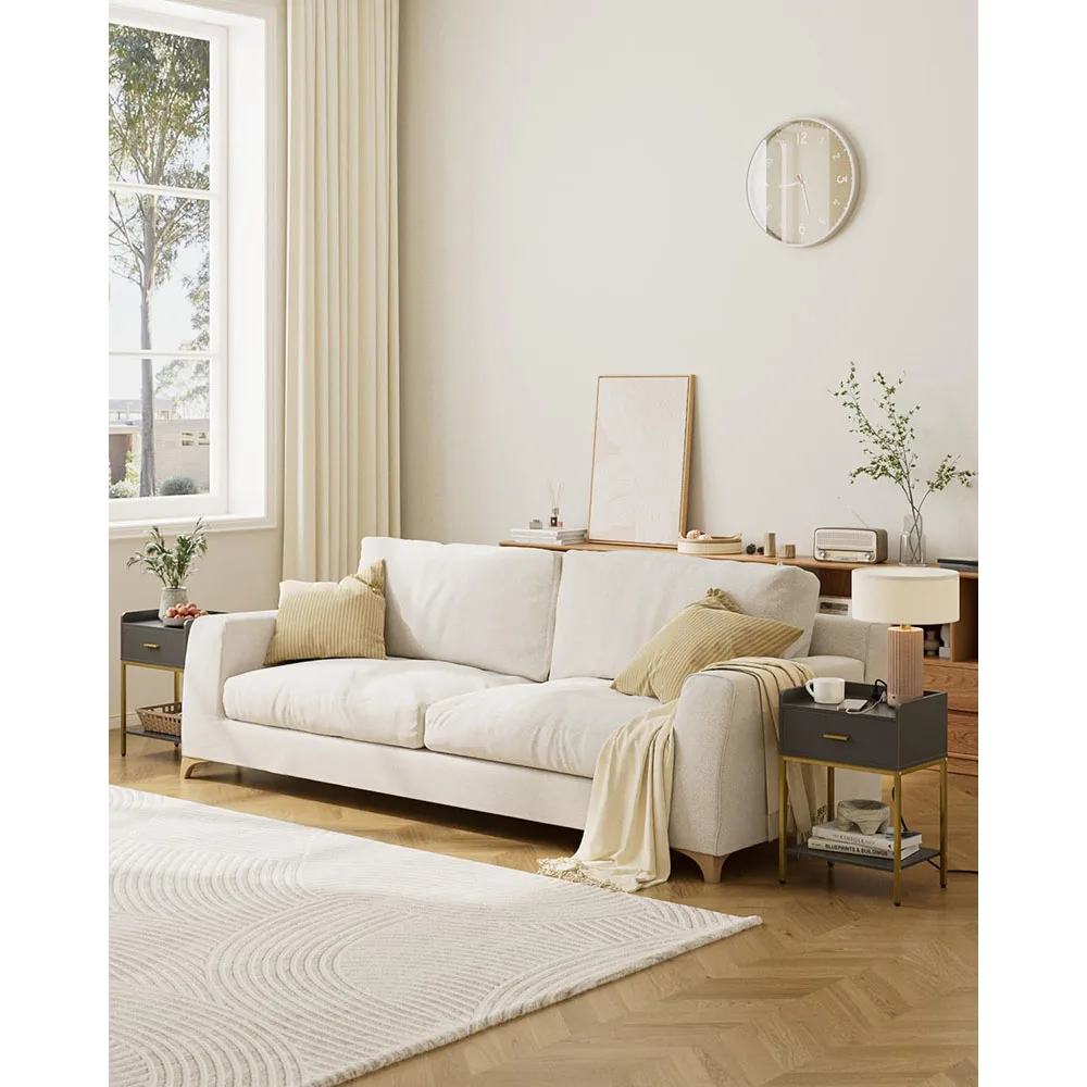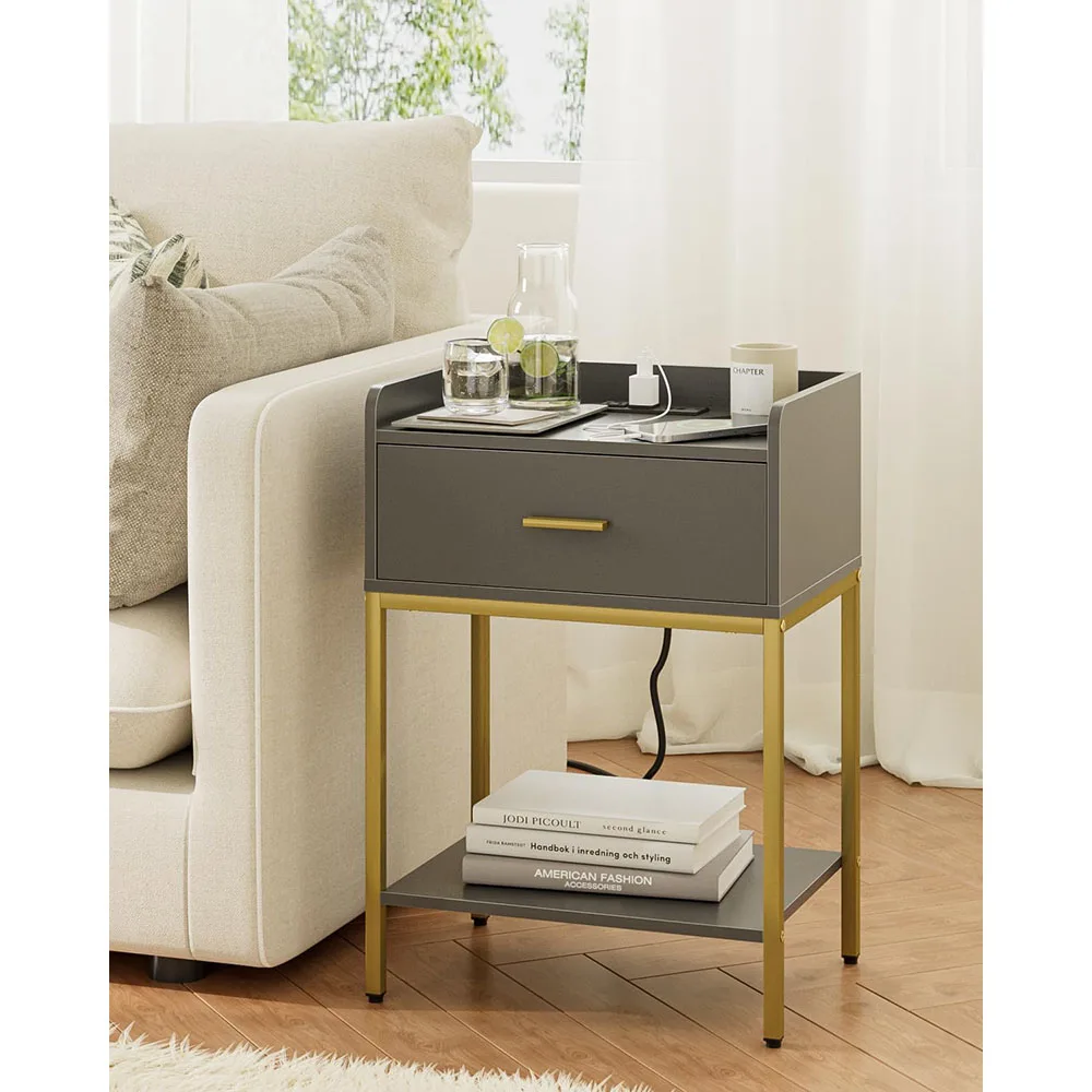 Modern Wood Nightstand Charging Station 3-Tier Storage Drawer Shelf for Bedroom & Living Room Grey