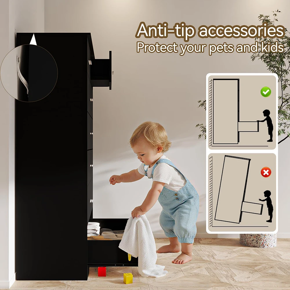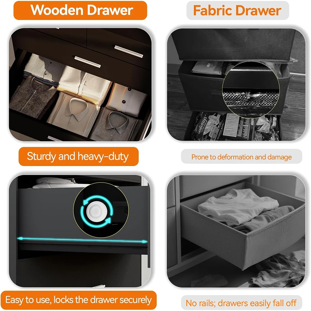 Nu-Deco 47.3" Tall Dresser Bedroom Chests Drawers Charging Station 7 Drawer Metal Slide Rail Modern Wood Closet Organizer Large