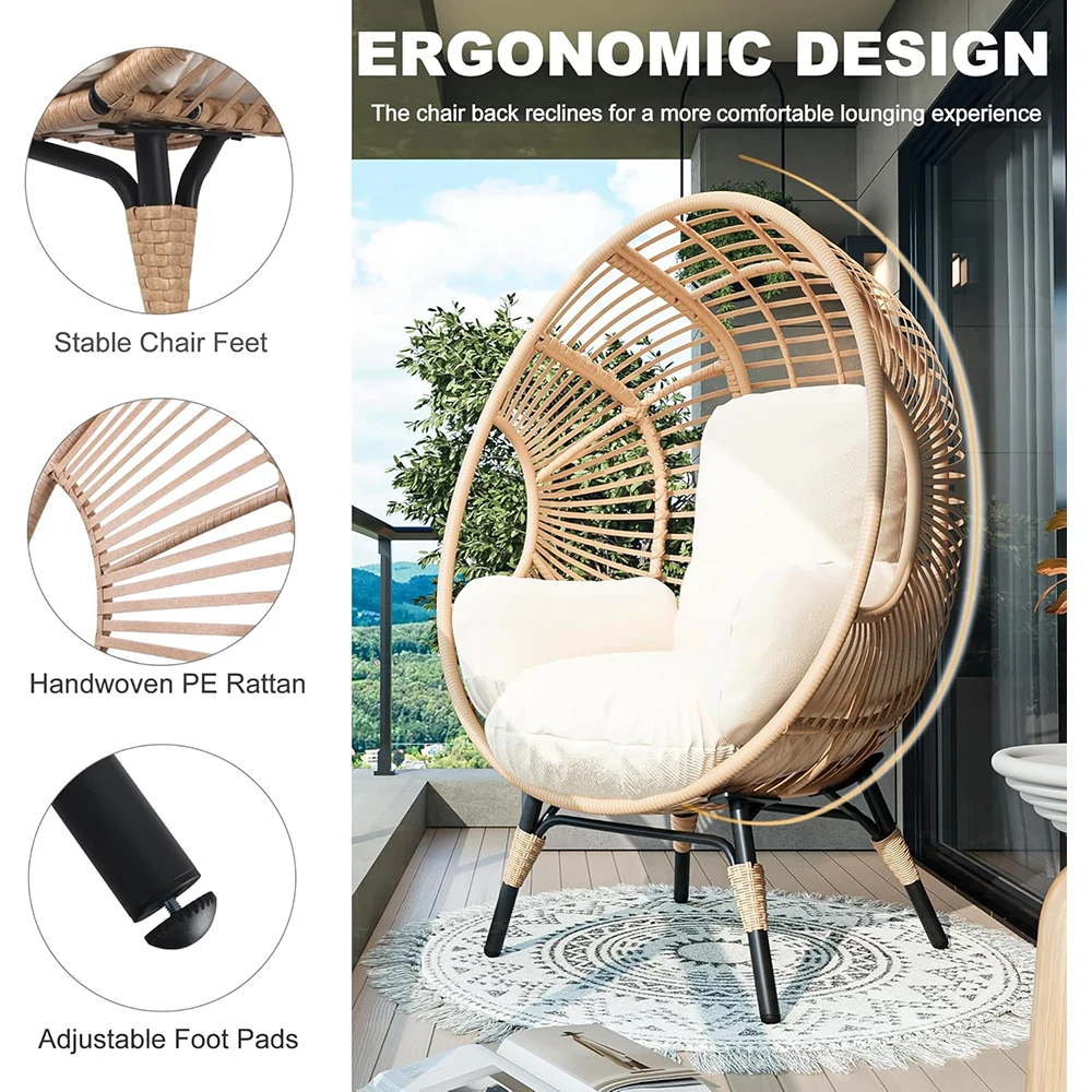 Rattan Egg Chair Outdoor Patio Lounge Chair Thick Cushions Modern Design for Garden Backyard Porch Bedroom
