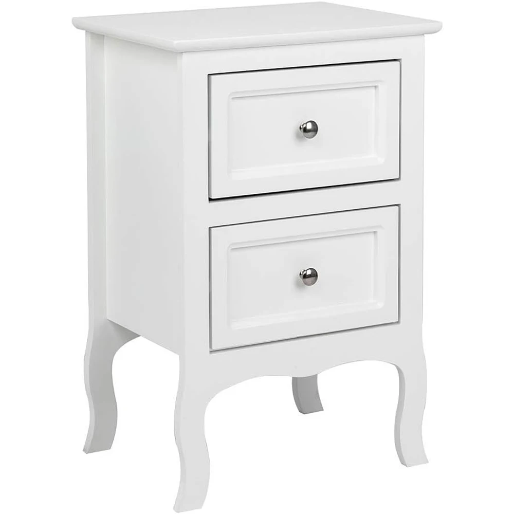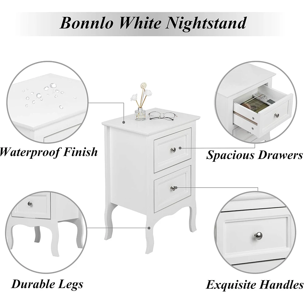 White Wooden Modern Nu-Deco Nightstand with 2 Drawers LED Lighting for Small Spaces Bedroom & Living Room Storage