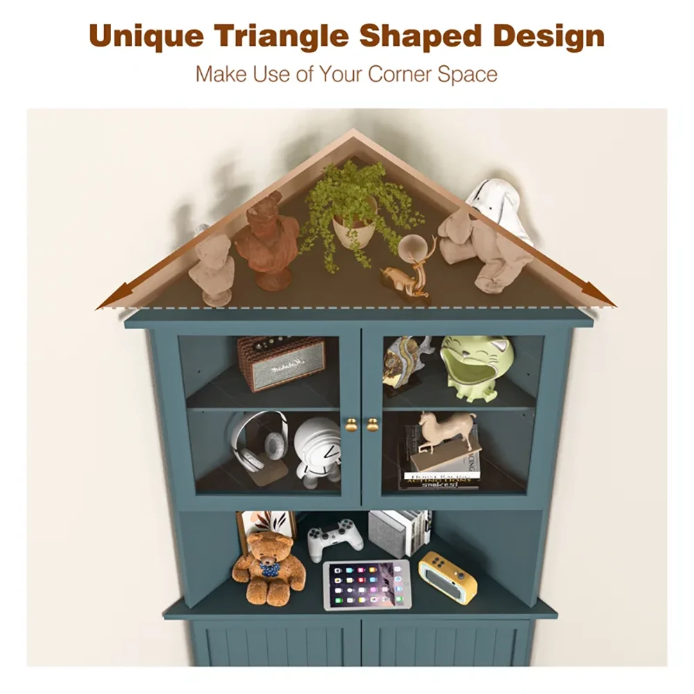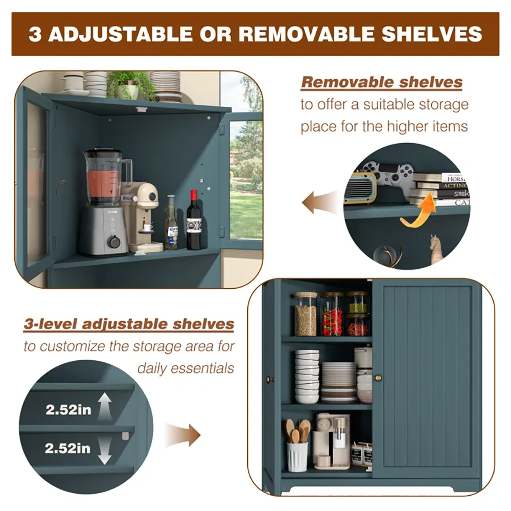 Wooden Freestanding Pantry Storage Cabinet with Doors and Shelves for Dinning Room or Kitchen