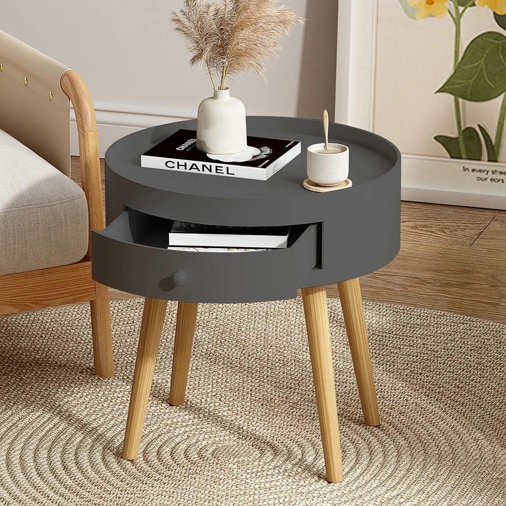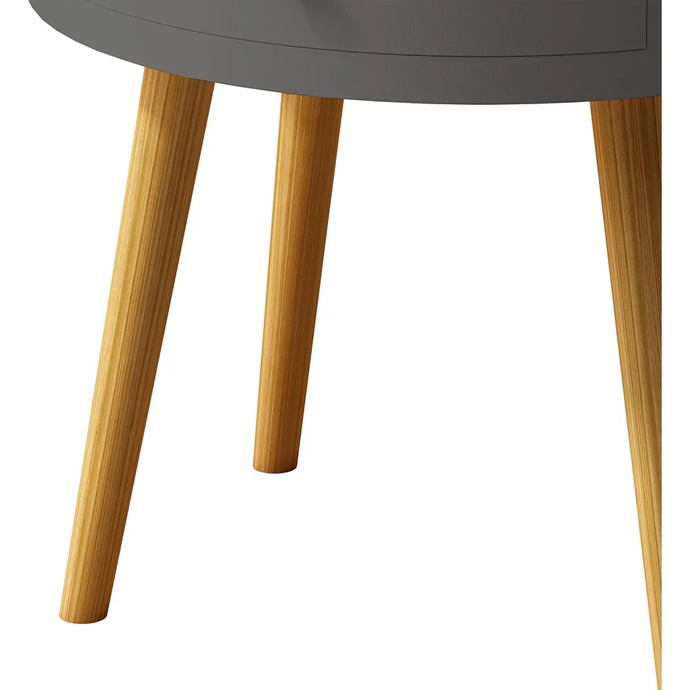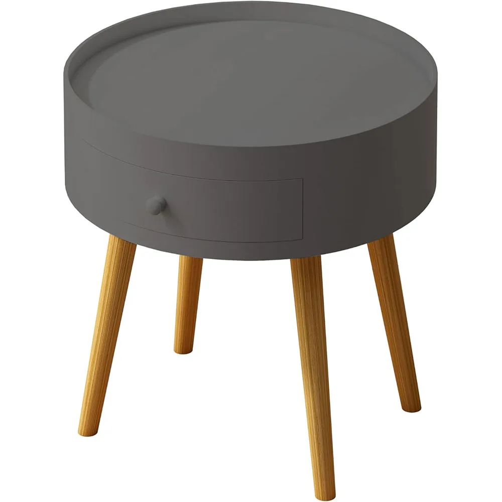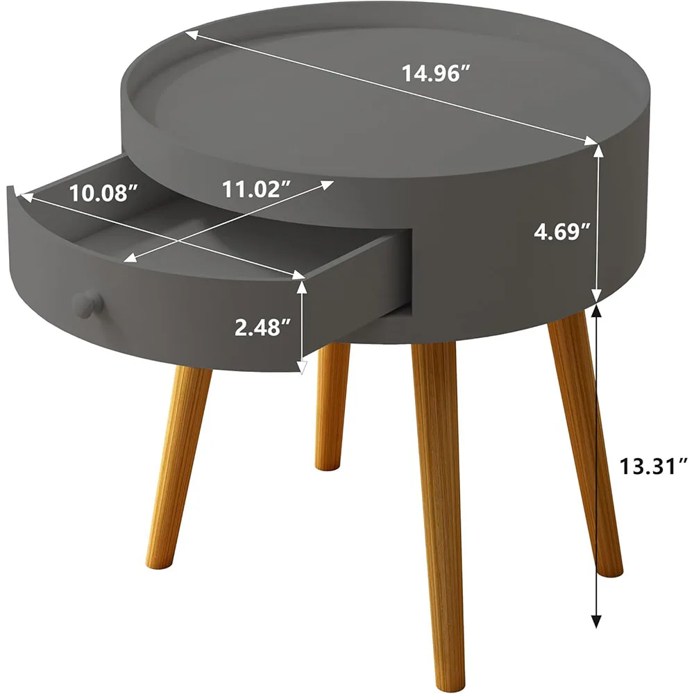 Nu-Deco moderni mali noćni stočić sa fiokom za skladištenje, hrastova noge, 18 inča visine, sivi – laka montaža za spavaću sobu