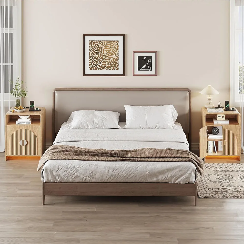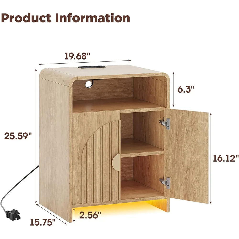 Nu-Deco moderni noćni stočić sa LED osvetljenjem, podesiv komad nameštaja za skladištenje, urezana vrata, otvoreno skladištenje, tablela pored kreveta za spavaću sobu