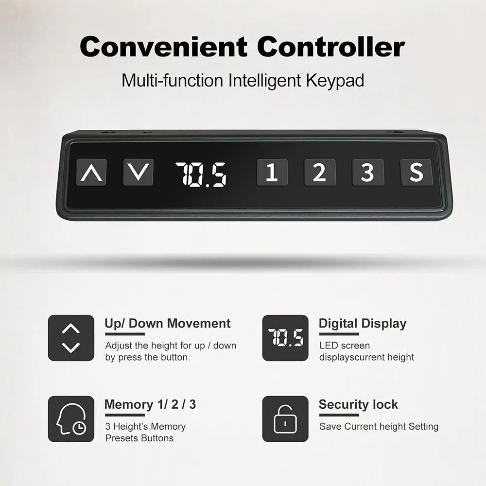 Uy ofis uchun butun parda elektrli o'zgaruvchan balandlikdagi kompyuter stoli g'ildiraklar bilan birga turish-oltirish rejimida ishlaydigan stol